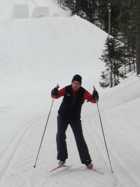 Беговые лыжи были полезны для равновесия. Они не так жестко прикреплены к ноге как горные и при этом очень неустойчиво ведут себя при спуске, поэтому, ошибки в распределении веса заканчивается на снегу. Мы называли беговые лыжи "бумажными", что бы передать как они ведут себя на горнолыжном спуске.