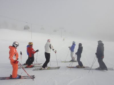 Что бы эффективнее использовать время курсов, Тони часто практиковал работу в группах, что бы мы обучали друг-друга.. На мой взгляд этот подход хорошо сработал для нас, так как позволил не только улучшить свою технику, но и поработать над навыками обучения. Часто было сложно обнаружить проблему в технике коллег, ведь мы все достаточно хорошие лыжники. При этом наблюдали друг за другом мы с разных ракурсов, доходило до того, что обучающий ехал всего в нескольких метрах за обучаемым. Это позволяло вблизи рассмотреть технику и проследить за большим количеством поворотов подряд с близкого расстояния.