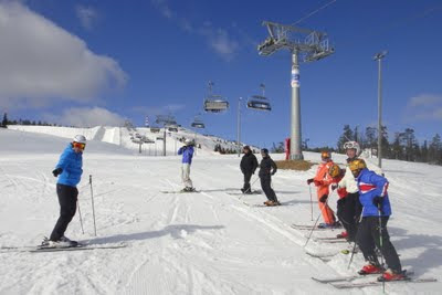 Так же один день программы был отведен на фристайл. Начали занятие мы с могула, т.е. езда по очень крутой трассе с искусственно подготовленными буграми. Так как в Руке проводятся международные соревнования по могулу - трасса действительно очень крутая, а бугры очень большие. Несмотря на то, что нам объяснили технику - первые спуски казалось невозможным проехать больше 5-10 бугров и не вылететь с трассы. Но через несколько спусков у всех начало получаться с переменным успехом. Но все равно периодически бугры по пояс приводили старательных инструкторов "в кювет". Так же в этот день удалось опробовать half-pipe. Несмотря на первоначальное опасение, это оказалось не так сложно, как я представлял.