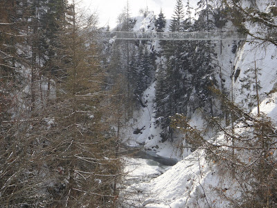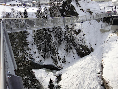 Пешеходный мост между скал в Зельдене