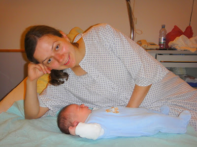 Сын родился поздним вечером. Его положили ко мне на живот и Сергей немного расслабился. Прошло около полу часа, врач и акушерка пытались несколько раз достать плаценту, но безрезультатно. Они даже пробовали акупунктуру, т.е. вставляли в мой живот какие то маленькие иголочки. Тогда врач сказал, что они готовят операционный зал и дал подписать бумагу о согласии на общую анестезию. Но в последний момент, плацента все таки вышла и обошлось без операций.