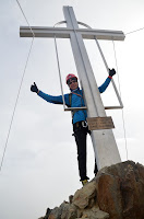 Наверху Влад меня поздравляет с покорением вершины Тироля, фотографируемся и быстро перекусываем. Почему быстро? Ветер с высотой только увеличился, а тут еще и начинают налетать облака. Поэтому проводим на вершине минут 20 и начинаем спуск.