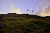 Сначала спуск идет ничуть не быстрее подъема, ведь наваленные камни не добавляют стабильности. Но после крутого участка одеваем кошки и начинаем идти по льду уже быстрее. Как только доходим до снега и вовсе переходим в медленный бег. Таким образом спуск до хижины у нас занимает всего два с половиной часа. В хижине отдыхаем и полноценно обедаем, после чего продолжаем путь вниз. Желания идти всю дорогу до Вента пешком у нас не осталось, так что мы решили воспользоваться подъемником. Но и до него надо идти немногим больше часа. Дорога пролетает уже совсем незаметно и вот мы уже едем вниз на уютном кресле.