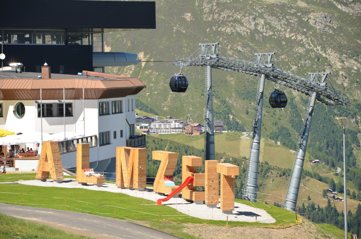 Тут мы зашли на новую детскую площадку, которую построили вокруг надписи Альмзайт (Almzeit). В результате наш путь по окраинам Зельдена от Тифенбаха до Гайслахкогеля занял немногим больше 4-х часов. Далее подкрепились в Тирольском ресторанчике рядом с детской площадкой. Там я встретил Роберта, который руководит ресторанами в Зельдене. Мы интересно побеседовали о планах на следующий сезон и он рассказал немного о новом ресторане который строится на вершине Гайслахкогель.